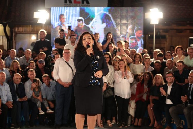 “Shteti ka harruar që në vitin 1999 të gjitha kamerat e televizioneve më të njohura në botë ishin pikërisht këtu, për të parë me sytë e tyre vuajtjet e nënave tona, për të parë me sytë e tyre familjet që kishin humbur edhe fëmijët në djep, për të parë e gjithë bota se çfarë sakrifice dhe çfarë plage e madhe akoma është e hapur në Gjakovë dhe në krejt Kosovën”, tha kandidatja e LDK-së për kryeministre.
