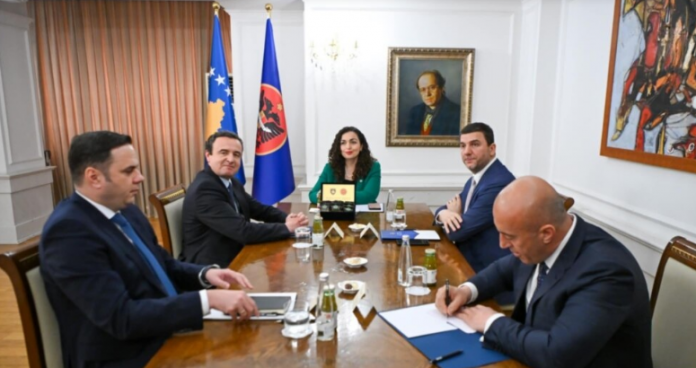 Në takim – që i cili nisi pak pas orës 13:00 në zyrën e presidentes – po marrin pjesë Albin Kurti i Lëvizjes Vetëvendosje, Memli Krasniqi i Partisë Demokratike të Kosovës, Lumir Abdixhiku i Lidhjes Demokratike të Kosovës dhe Ramush Haradinaj i Aleancës për Ardhmërinë e Kosovës.