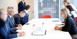 Ndryshe, para pak minutash ka përfunduar takimi ndaras i Presidentit Hashim Thaçi dhe presidentit serb, Aleksandar Vuçiç me përfaqësuesen e Lartë për Politikë të Jashtme të BE-së, Federica Mogherini./Kosova Post/