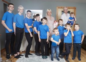 Cameron erdhi në jetë në 27 gusht dhe çifti pretendon se ky do jetë fëmija i fundit i familjes së tyre të madhe, Campbell, 17 vjeç, Harrison, 16, Corey, 14, Lachlan, 11, Brodie, 9, Brahn, 8, Hunter, 6 vjeç, Mack, 5, Blake, 3 dhe Rothagaidh, 2 vjeç.