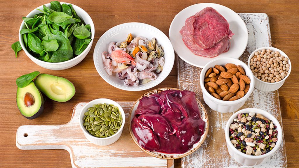 Zinkun mund ta gjeni tek drithërat, mishi i viçit, mëlçia e viçit, mishi i gjelit, vezët, bajamet, djathi, fasulet, farat e kungullit, farat e susamit, bizelet, spinaqi dhe kërpudhat.