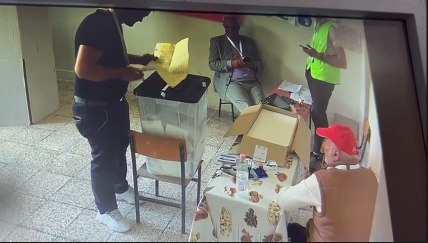 Në një pamje tjetër shfaqen problemet në të njëjtën qendër votimi ku merren fletët e votimit pa kartë identiteti.