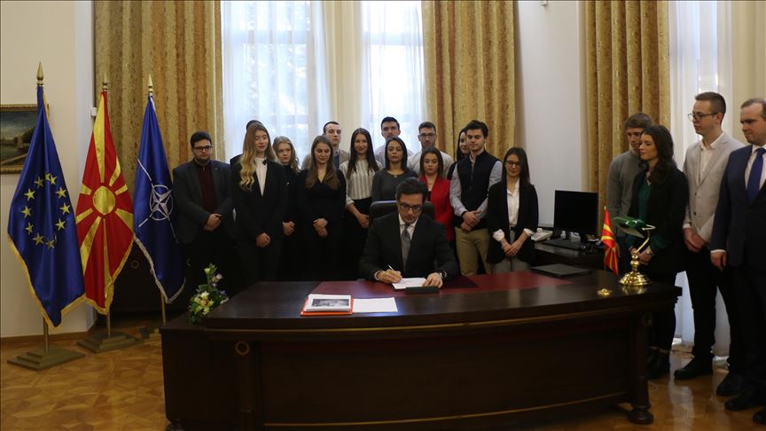 Presidenti i Republikës së Maqedonisë së Veriut, Stevo Pendarovski, sot nënshkroi dekretin për shpalljen e Ligjit për ratifikimin e Marrëveshjes Veriatlantike,  (AA).