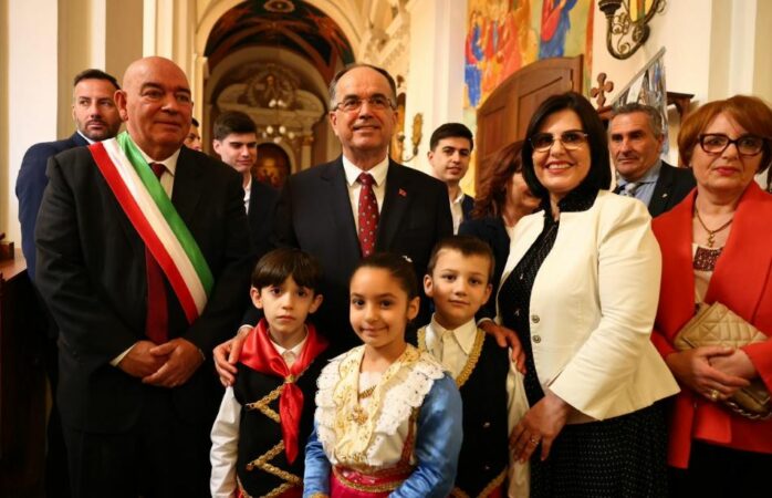 Një falënderim Presidenti Begaj përcolli dhe për Italinë fqinje, që siç hapi dyert për arbëreshët, të njëjtën qasje tregoi edhe ndaj shqiptarëve me ndihma gjatë viteve të vështira pas viteve ‘90, duke pritur emigrantët e dalë nga izolimi, e më vonë duke integruar Diasporën e re të Shqipërisë.