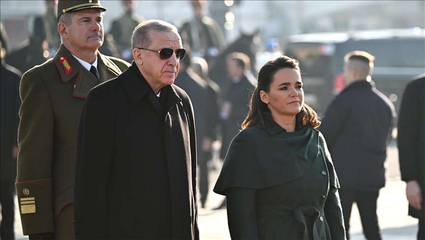 Presidenti i Türkiyes, Recep Tayyip Erdoğan, u prit me ceremoni zyrtare nga presidentja hungareze, Katalin Novak, në kryeqytetin e Hungarisë ku ka mbërritur për të zhvilluar takime zyrtare.