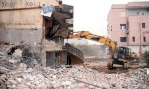 Operacioni për prishjen e kësaj godine ka nisur që në orët e para të ditës së enjte dhe mjetet e rënda të Inspektoriatit të Mbrojtjes së Territorit kanë bërë shembjen e saj në mënyrë që të mos ishte pengesë për vijimin e qarkullimit të automjeteve në këtë segment rrugor.