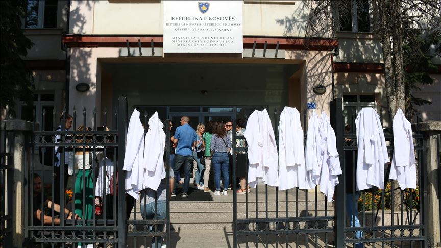 Në mënyrë simbolike gjatë protestës së tyre, ata vendosën mantelet e bardhë në derën kryesore të Ministrisë së Shëndetësisë në Prishtinë.