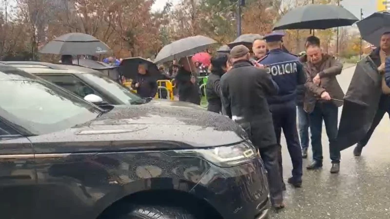 Një prej tyre ka dalë nga makina dhe i ka kërkuar protestuesve që të hapin rrugën për vijuar rrugën.