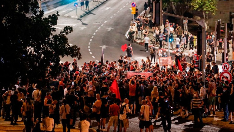 Në Tel Aviv dhe Jeruzalem natën e së shtunës u mblodhën demostrues për të protestuar kundër masave të trajtimit të qeverisë për krizën e koronavirusit, si dhe për t’ i bërë thirrje kryeministrit Benjamin Netanyahu të hiqte dorë nga gjyqi i tij për korrupsionin. Pas policisë, 13 persona u arrestuan në Tel Aviv për shkaktimin e trazirave publike dhe hedhjen e objekteve ndaj forcave blu, ndërsa 15 persona u arrestuan në Jeruzalem për trazira publike dhe bllokimin e rrugëve.