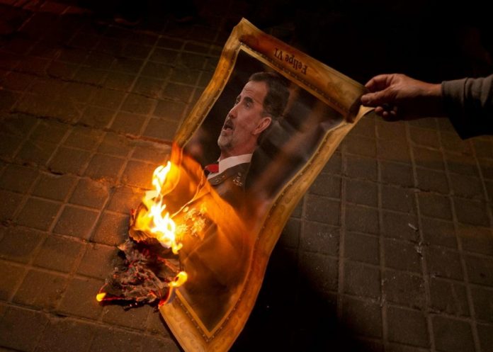 Protestuesit dogjën fotot e mbretit nëpër rrugët kryesore ndërkohë që shumë prej tyre i binin tenxhereve dhe tepsiave dhe thërrisnin, Katalonja nuk ka mbret!