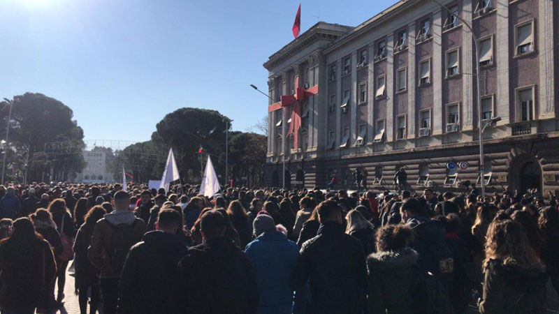 Protesta vijon, studentët grumbullohen para kryeministrisë