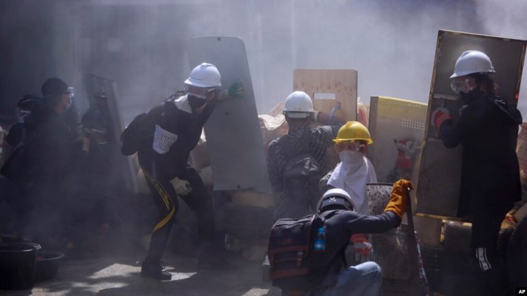 Policia raportohet se ka hapur zjarr ndaj protestuesve në qytetin Yangon dhe Monywa dhe ka përdorur gaz lotsjellës.