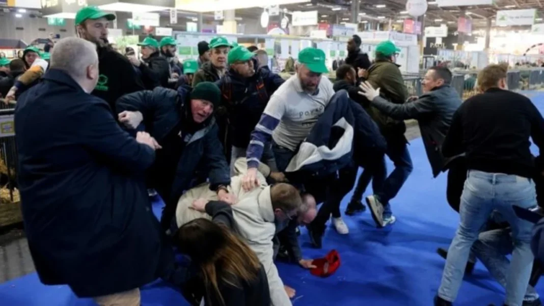 Protestuesit, që i janë bashkuar një lëvizjeje mbarëevropiane kundër konkurrencës nga importet e lira nga jashtë Bashkimit Europian dhe për fitimeve të ulëta, kërkuan më insistim përgjigje nga qeveria franceze teksa në kryeqytetin francez çelej panairi kombëtar bujqësor, Salon de l’Agriculture.