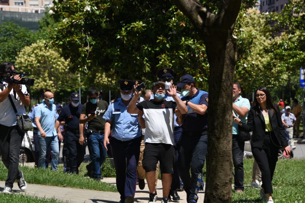 Por Policia nuk i ka lejuar që të afrohen tek Ministria e Infrastrukturës dhe Energjisë duke i thënë punonjësve se nuk lejohen tubime të paligjshme. Protestuesit janë ndaluar tek Sheshi Skënderbej ku dhe janë shoqëruar 5 persona.