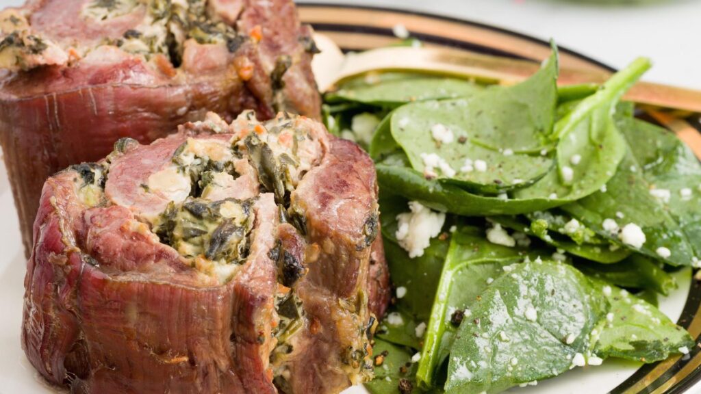 Tani merrni masën e misht që përgatitët në fillim dhe hapeni në formë katërkëndore mbi një qese. Në mes të saj vendosni masën cilindrike të përzierjes me spinaq.