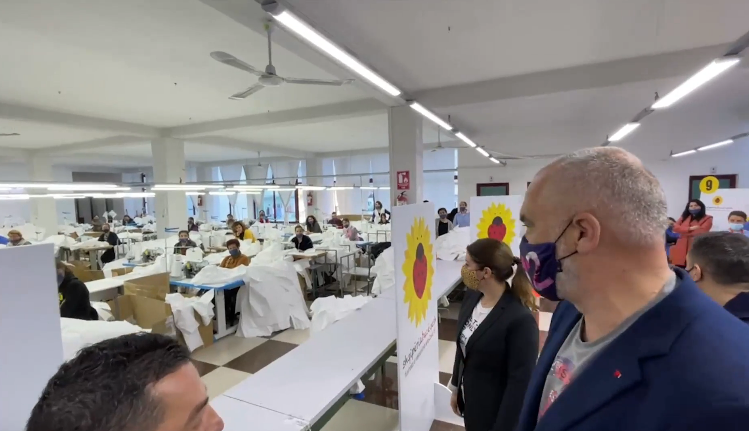 Kryeministri Edi Rama i shoqëruar nga ministrja e Shëndetësisë, Ogerta Manastirliu dhe ministri i Rindërtimit, Arben Ahmetaj ishte sot në një fasoneri ku ka njoftuar nisjen e vaksinimit për punonjës të kësaj fushe.