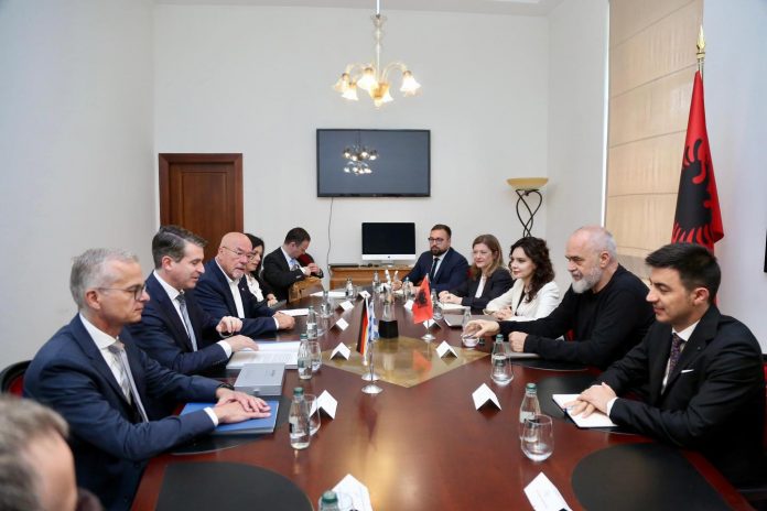 Kryeministri Edi Rama dhe ministrja e Shtetit për Marrëdhëniet me Parlamentin, Elisa Spiropali pritën sot në një takim në Tiranë ministrin për Çështjet Evropiane dhe Ndërkombëtare të Landit të Bavarisë, Eric Beibwenger.
