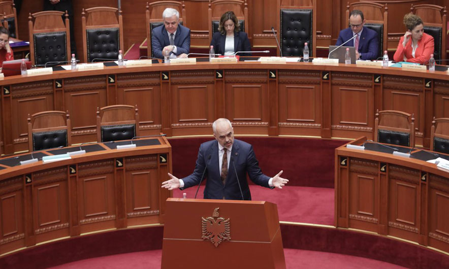 Opozita braktisi seancën plenare dhe fill pas kësaj foltores iu drejtua Kryeministri Edi Rama. Ai i lidhi akuzat e opozitës për trafik droge në drejtim të vëllait të ministrit të Brendshëm me reformën në drejtësi dhe hapjen e negociatave.