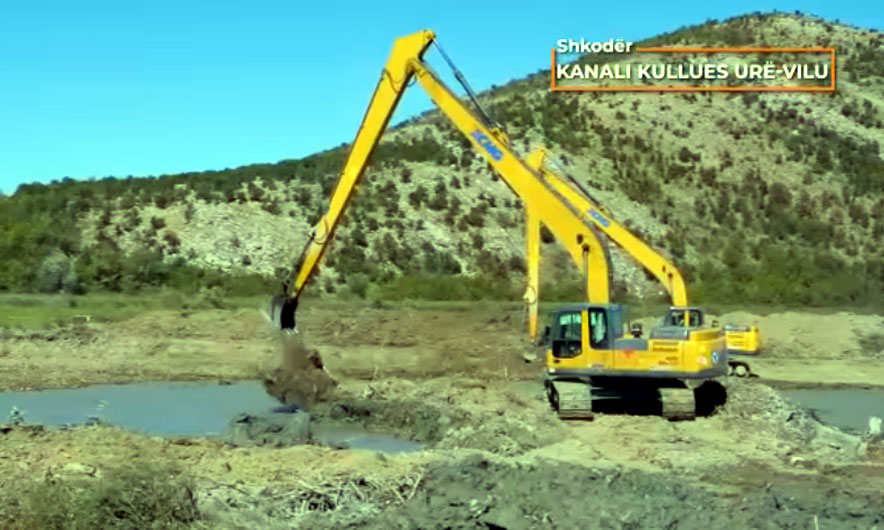 Ai publikon pamje nga puna për çlirimin e këtij kanali kullues që mundëson ujitjen dhe kullimin e tokave bujqësore në zonën e Shkodrës.