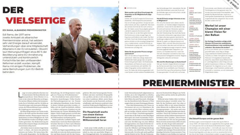 Kryeministri Edi Rama në një interviste për “Die Welt” tha se sikundër edhe KE e rekomandoi, Shqipëria është gati për hapjen e negociatave me BE, proces për të cilin, sipas tij, vendi i ka bërë detyrat.