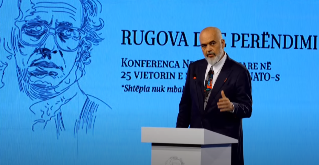 Në fjalën e tij Rama u shpreh se Rugova ishte politikani më atipik shqiptar, ndërsa duke cituar shkrimtarin Ismail Kadare, e quajti Rugovën si politikan pa pallat e pa komb.