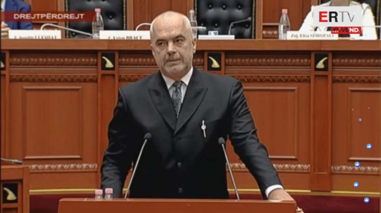 Ndërsa deputetët e opozitës e kërkuan të ishte në sallë, i pari i qeverisë, Edi Rama hyri në salle rreth orës 12:00, për tu fokusuar tek raporti i Komisionit Europian.