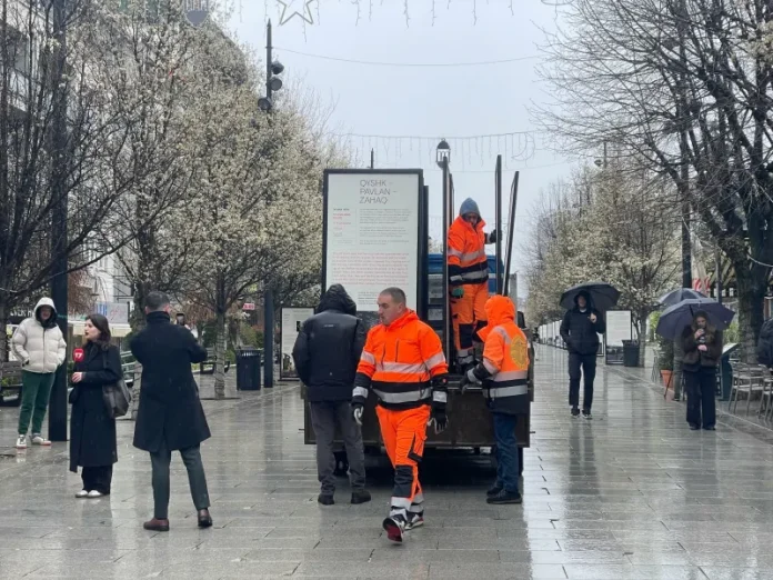 Ekipet e kryeqytetit kanë nisur të heqin tabelat e ekspozitës “Masakrat në Kosovë 1998-1999”. Një ditë më parë janë vërejtur pasaktësi në përmbajtjet e këtyre të dhënave.