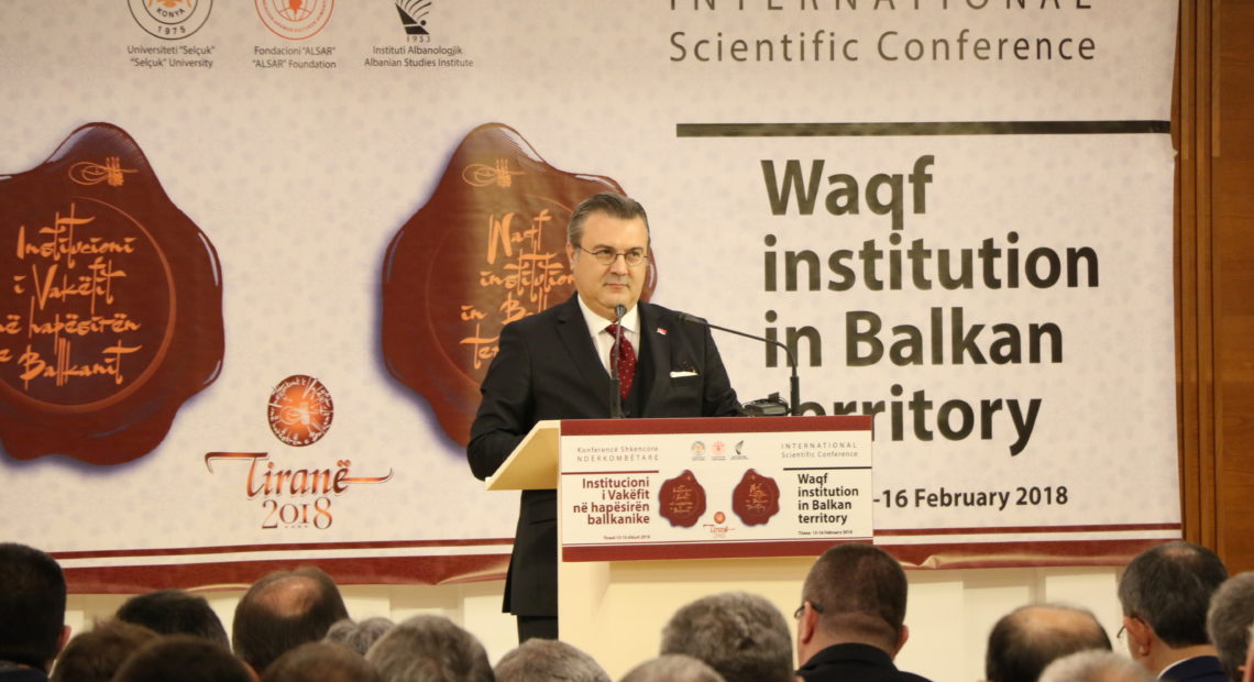 Ambasadori Yoruk ka mbajtur një fjalim në ceremoninë e hapjes së konferencës shkencore ndërkombëtare, me temë “Institucioni i Vakëfit në hapësirën ballkanike” të organizuar në Tiranë nga Fondacioni Alsar në bashkëpunim me Institutin Albanologjik të Prishtinës dhe Universitetin Selçuk të Konya me mbështetjen e Agjencisë Turke për Bashkëpunim dhe Koordinim (TIKA).