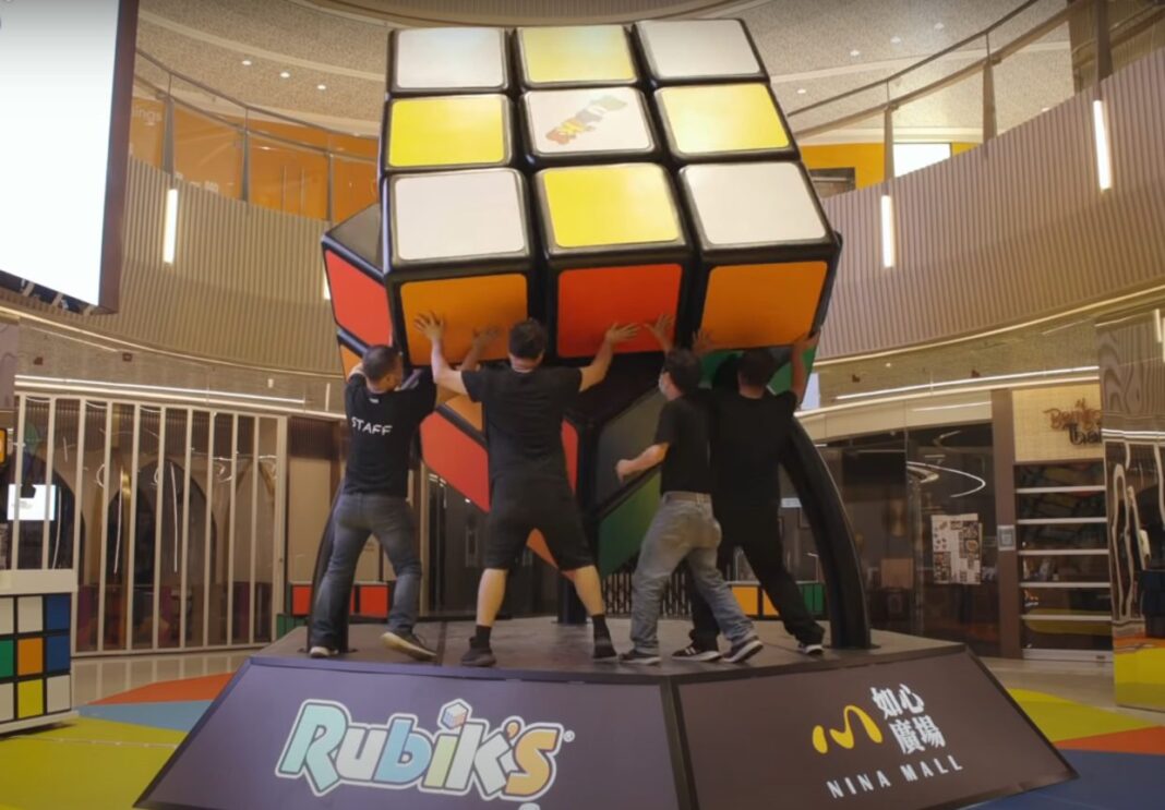 Nina Mall në Hong Kong kishte një kub gjigant enigmash të ndërtuar në ambientet e tij dhe Guinness World Records ndau një video me kohë të ndërtimit.