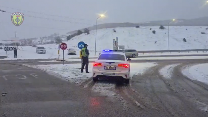 Policia e Shtetit njoftoi sot se për shkak të reshjeve të borës, qarkullimi është vështirësuar në disa akse rrugore, kryesisht në zonat malore të qarqeve Shkodër, Kukës, Dibër, Korçë dhe në Sarandë.