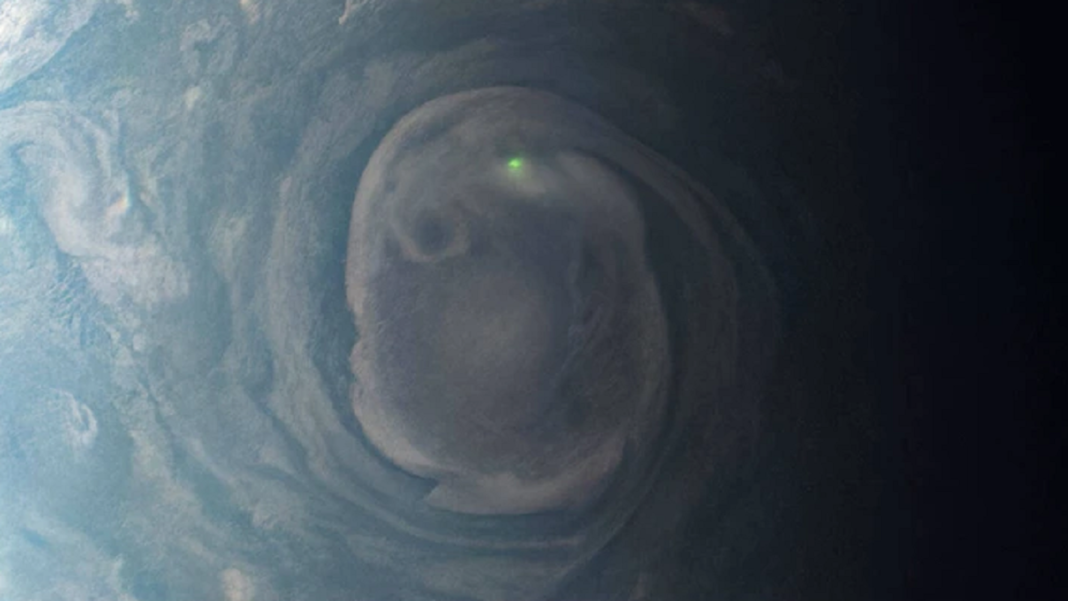 Teksa përfundoi fluturimin e tij të 31-të afër Jupiterit, Juno i NASA-s hasi në një vorbull pranë polit verior të planetit. JunoCam, i cili ishte 32.000 kilometra mbi majat e reve të Jupiterit, fotografoi vorbullën dhe një rruzull jeshil në të, për të cilin specialistët e NASA-s kanë konfirmuar se është rrufe.
