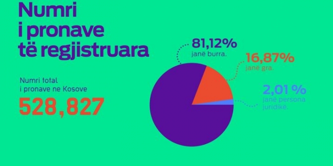 Të dhënat tregojnë se numri total i pronarëve në Kosovë është 528,827. Prej tyre 429,000 apo 81,12%  janë burra dhe 89,193 apo 16,87% janë gra. Pjesa tjetër e mbetur prej 10,634 apo 2,01 % janë persona juridikë.