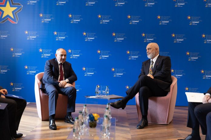 Kryeministri Edi Rama priti sot kryeministrin e Armenisë Nikol Pashinyan, i cili ndodhet në Tiranë në kuadër të Samitit të Komunitetit Politik Evropian, që do të mbahet nesër në Tiranë.