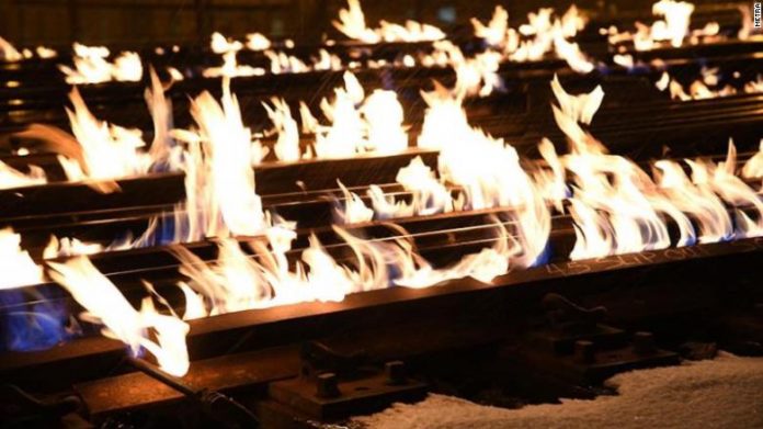 Temperaturat e ulëta kanë detyruar mirëmbajtësit e trenave në Chicago që të hedhin zjarr mbi hekurudha në mënyrë që t’i mbajnë trenat në lëvizje.