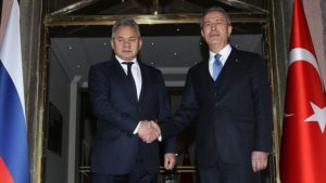 Ministri i Mbrojtjes Kombëtare, Hulusi Akar, përmes një telefonate ka diskutuar me homologun e tij rus Sergey Shoygu çështjet rajonale të sigurisë, veçanërisht zhvillimet e fundit në provincën Idlib të Sirisë dhe masat që do të ndërmerren për të zvogëluar tensionet në zonë, brenda suazave të marrëveshjes së nënshkruar në Soçi”, thuhet në kumtesën e lëshuar nga ministria turke.