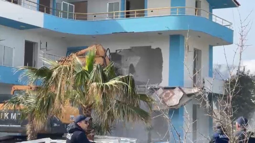 Inspektoriati Kombëtar i Mbrojtjes së Territorit (IKMT) ka shembur hotelin trekatësh në Radhimë të Vlorës këtë të martë.