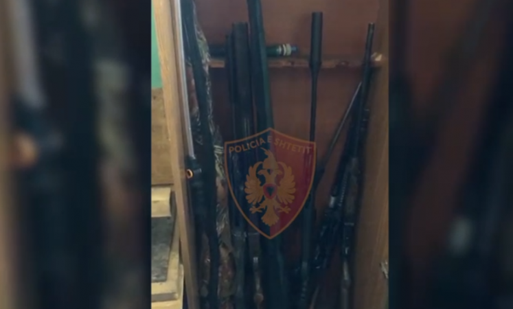 Në vijim të operacionit, gjatë kontrollit në dyqanin e këtij shtetasi, u gjetën dhe u sekuestruan në cilësinë e provës materiale 2 armë zjarri pistoletë, 4 pushkë sportive, 3 armë gjahu, pjesë të armëve të ndryshme dhe krehër me fishekë luftarakë.