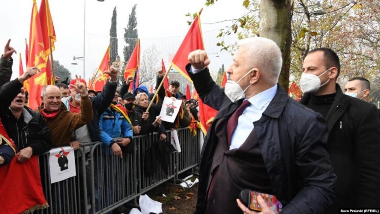 Në një moment, anëtarë të Partisë Demokratike të Socialistëve, e cila është në opozitë, dhe ish-kryeministri Dushko Markoviq kanë dalë para ndërtesës së Kuvendit dhe janë përshëndetur nga të tubuarit.