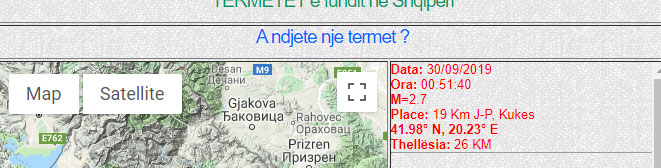 Sipas IGJEUM tërmeti ka pasur epiqendrën 19 kilometër në Jug Perëndim të Kukësit në një thellësi prej 26 kilometra.