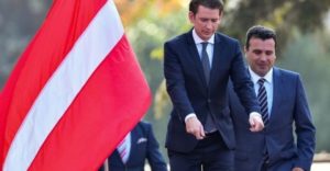 Kancelari austriak Sebastian Kurz, i cili sot po qëndron për vizitë zyrtare në Maqedoni, u prit me flamur të gabuar në ceremoninë zyrtare para Qeverisë, ku me kryeministrin maqedonas Zoran Zaev bën parakalim para gardës.