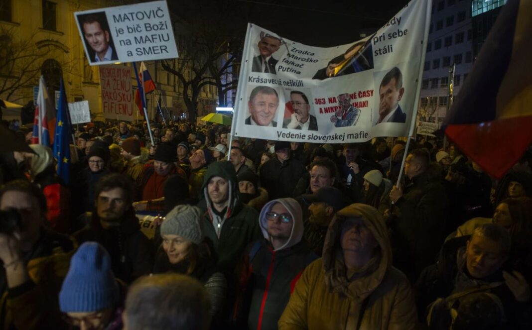 Duke brohoritur “Mjaft më Fico” dhe duke mbajtur pankarta duke thënë “Hiqi duart nga demokracia jonë”, protestuesit mbushën sheshin kryesor të Bratislavës për të kundërshtuar këto plane.