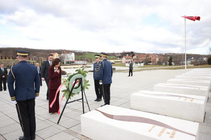 Ministrja për Evropën dhe Punët e Jashtme, Elisa Spiropali, e nisi vizitën zyrtare në Kosovë nga Prekazi, në Kompleksi Memorial “Adem Jashari”.