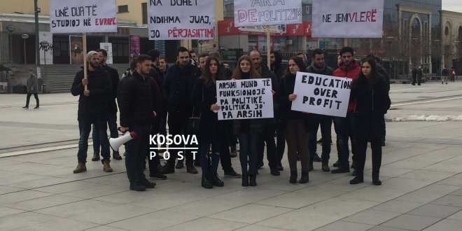 “Diploma jonë rrezikohet të mos njihet nga universitetet evropiane. Mos na privoni nga të drejtat tona për arsim. Unë dua të studioi në Gjermani shoku im në Francë. Mos na mohoni. Shqetësimi është politizimi në gjitha sferat e arsimit, tha njeri nga studentet protestues duke kërkuar në emër të studentëve që politika ti largoj duart nga arsimi, raporton Kosova Post./M.D