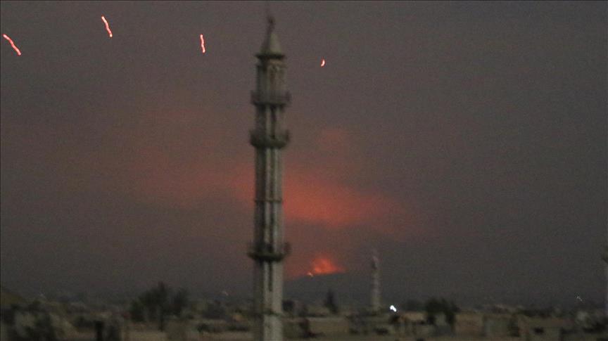 Gazetari i AA-së njoftoi se është goditur pika ushtarake e regjimit, e cila njihet si “Regjimenti i 47-të”, ku ka ndodhur një shpërthim i madh dhe ka shpërthyer zjarr.