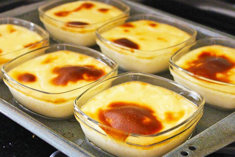 Vendosini tasat e vegjën në një tavë të mbushur me pak ujë, e më pas në furrë për t’i pjekur për rreth 20 minuta, ose derisa të krijohet një shtresë e artë.