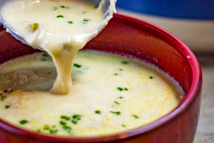 Pasi supën e kemi hequr nga zjarri dhe është ftohur pak, pritet me të verdhën e vezës dhe lëngun e limonit.