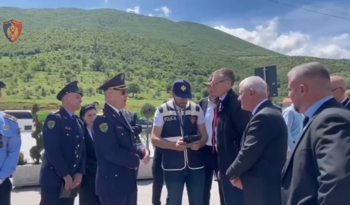 “Ministri Kundër Emigracionit të Paligjshëm në Mbretërinë e Bashkuar, Michael Tomlinson dhe ministri i Brendshëm i Kosovës, Xhelal Sveçla, ndoqën në kufirin mes Shqipërisë dhe Kosovës masat e marra nga Departamenti për Kufirin dhe Migracionin në Policinë e Shtetit për t’iu kundërvënë krimit të organizuar dhe emigracionit të paligjshëm. Ata inspektuan kamerat e reja për njohjen e targave, të financuara nga Mbretëria e Bashkuar, në vlerën e 1.6 milionë paund, me qëllim gjurmimin e kriminelëve që lëvizin mes vendeve”, bën të ditur Policia e Shtetit.