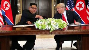 Takimi i Trump dhe Kim në qershorin e kaluar në Singapor ishte i pari midis një presidenti të SHBA dhe një udhëheqësi të Koresë së Veriut.