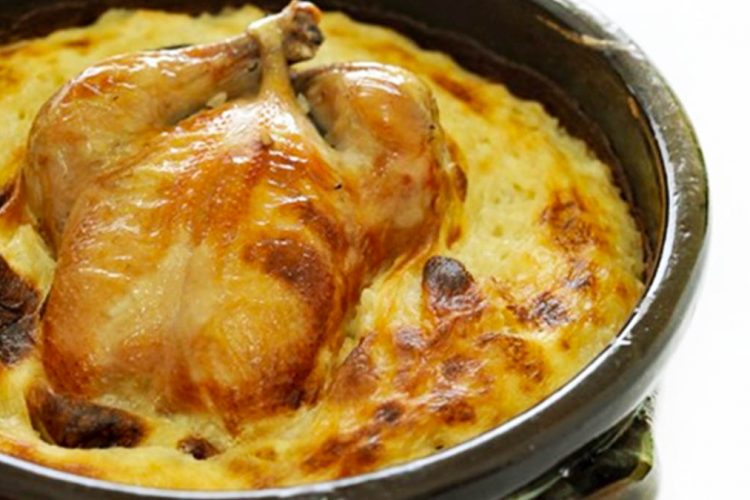 Si fillim bëjmë gati mishin e pulës. E pastrojmë mirë me ujë të bollshëm dhe e vendosim të prerë në copa në tavë ose nëse dëshironi pulën mund ta lini të plotë, të paprerë.