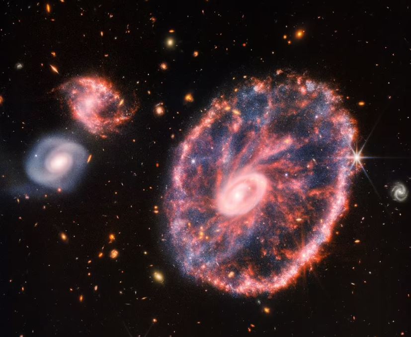 Secila prej bërthamave ka një unazë rrotulluese yjesh, e cila lëshon një dritë infra të kuqe verbuese. Kjo dritë u regjistrua nga James Webb.